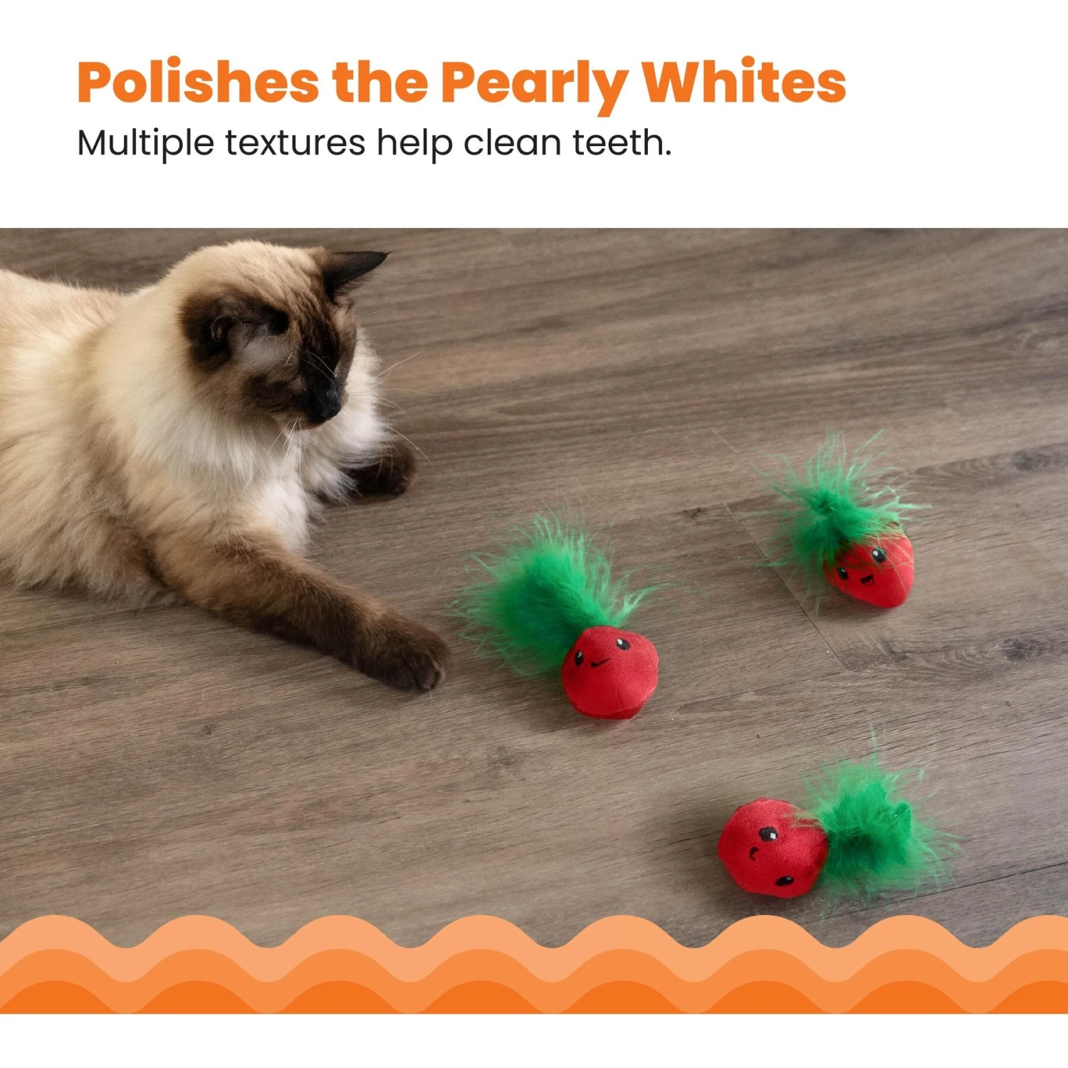 - Help clean soft plaque and tartar off your kitty’s teeth as they play and chew.