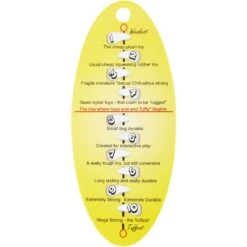 - Made with three layers that are bonded and sewn together to make one “Tuff” Layer. Most toys have just one seam to hold the toy together, Tuffy’s has 7. Webbing is sewn around the edges of the toy and then the edges are sewn together to make each toy extra Tuff.