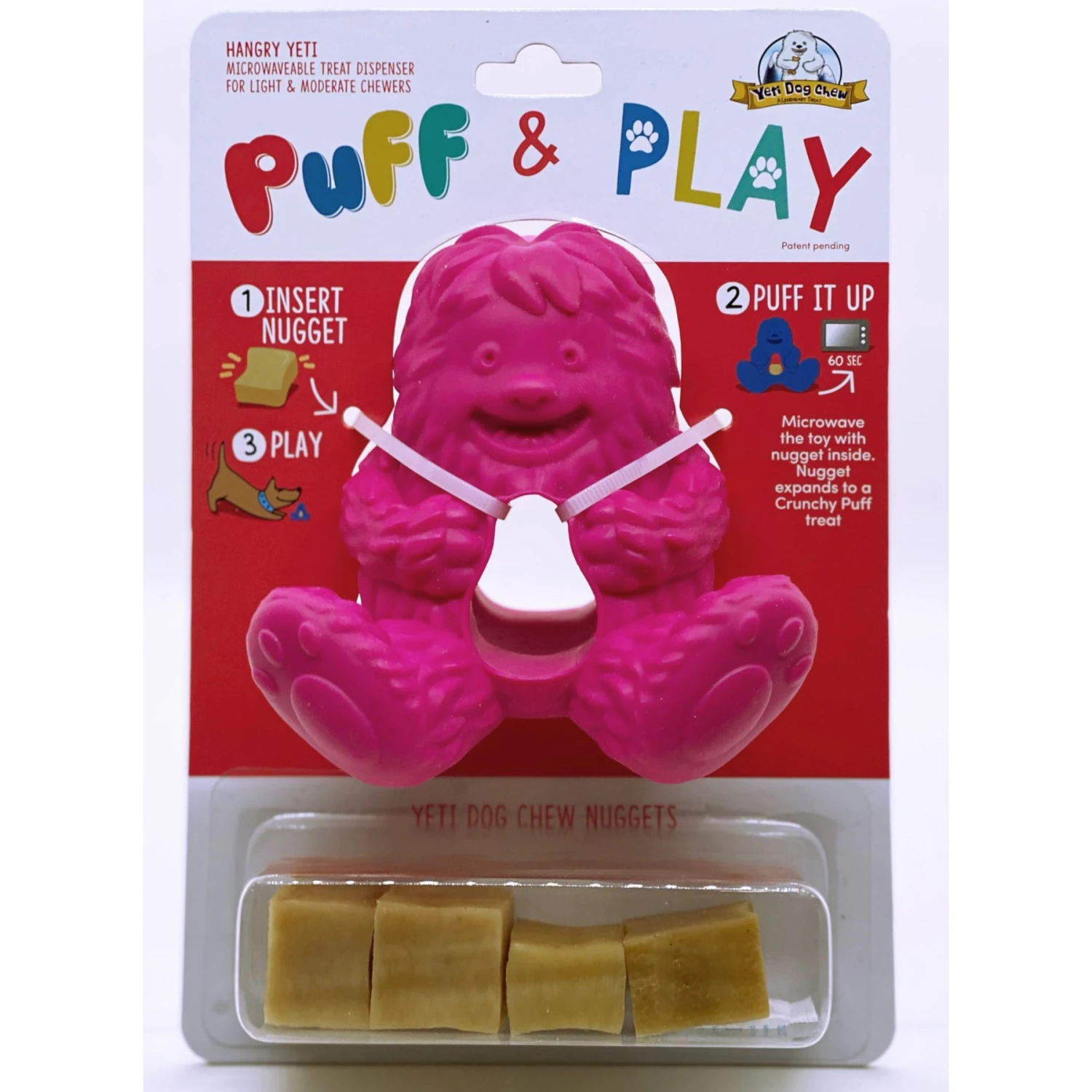 - Place a Yeti nugget in the toy, microwave for 1 minute, let cool and give to your furbaby.